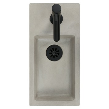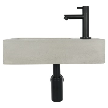 De handenwasserset Jukon beton past met zijn betonlook en zwarte kraan perfect in een trendy toilet. De sifon is net als de kraan zwart afgewerkt, waardoor een mooi geheel ontstaat. De kraan en de sifon zijn meegeleverd. De handenwasser zelf is gemaakt van beton en is 38,5x18,5x9 cm groot.