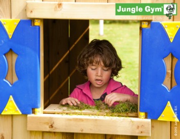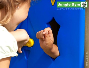 Bezorg je kind(eren) uren spelplezier met de Jungle Gym Club. Dit clubhuis is uiterust met twee verdiepingen en een glijbaan met optionele wateraansluiting Het onderste gedeelte heeft leuke blauwe luikjes met scharnieren die speciaal ontworpen zijn voor de veiligheid van kinderhandjes tijdens het openen en sluiten. Het slotje is van beide kanten open en dicht te maken. Ook verkrijgbaar met andere uitbreidingen zoals een schommel of winkeltje.