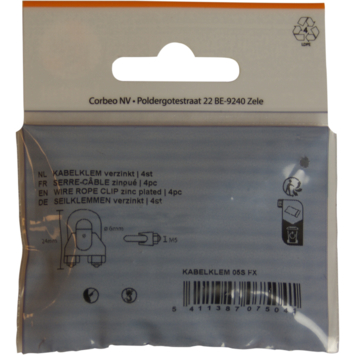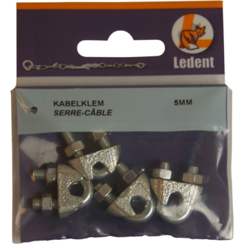Wil je een draad doeltreffend blokkeren en vastklemmen? Dat maakt de draadklem verzinkt 5 mm 4 stuks mogelijk. Met deze klem creer je snel en eenvoudig een verbinding die je later ook makkelijk kunt verwijderen. Deze draadklem is geschikt voor dunne touwen en kabels van 5mm. Doordat de klem gemaakt is van verzinkt metaal, is hij goed bestand tegen corrosie wat de levensduur van de draad verlengd. Deze draadklem wordt verkocht per set van 4 stuks, dus je hebt altijd een extra klem op voorraad. Kortom: met deze draadklem zorg je ervoor je staaldraad niet losschiet.