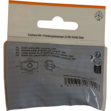Wil je een draad doeltreffend blokkeren en vastklemmen? Dat maakt de draadklem simplex 4 mm 2 stuks mogelijk. Met deze klem creëer je snel en eenvoudig een verbinding die je later ook makkelijk kunt verwijderen. Deze draadklem is geschikt voor dunne touwen en kabels van 4mm. Doordat de klem gemaakt is van verzinkt metaal, is hij goed bestand tegen corrosie wat de levensduur van de draad verlengd. Deze draadklem wordt verkocht per set van 2 stuks, dus je hebt altijd een extra klem op voorraad. Kortom: met deze draadklem zorg je ervoor je staaldraad niet losschiet.