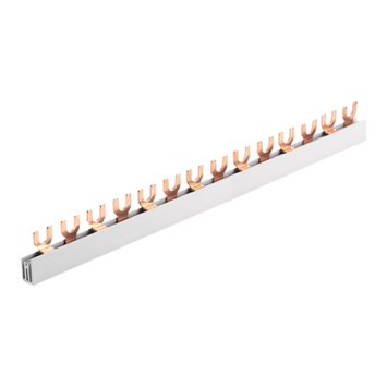 Met deze verbindingsrail kan je in een handomdraai tot 14 modules aansluiten in je zekeringkast, wat een aanzienlijke tijdswinst oplevert tegenover een traditionele bedrading met VOB kabel. Op maat af te zagen.