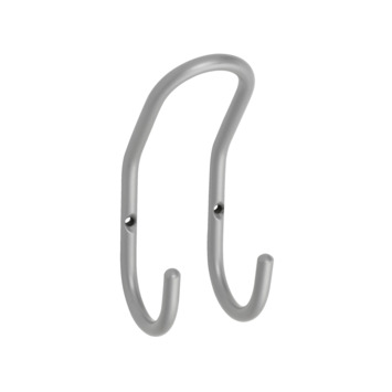 Deze degelijke kapstok is gemaakt van staal en heeft 2 haken. De kapstok is zilverkleurig afgewerkt.