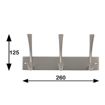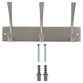Deze kapstok is afgewerkt in mat nikkel en heeft 3 haken.