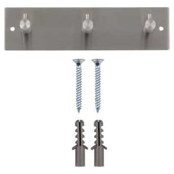 Deze moderne RVS kapstok is voorzien van 3 haken.