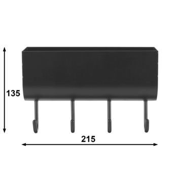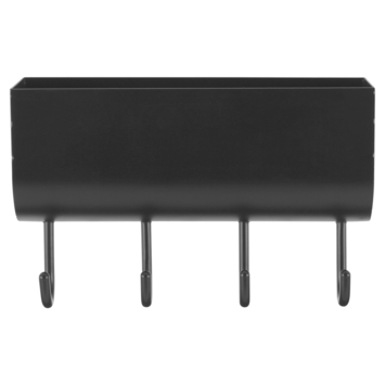 Deze compacte kapstok beschikt over een handige bakje voor het opbergen van diverse kleine spullen, waaronder sleutels. De kapstok is zwart afgewerkt en heeft 4 haken