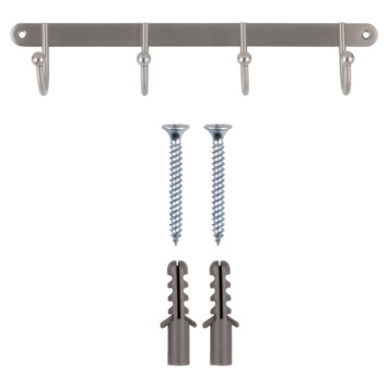 Deze moderne kapstok is gemaakt van RVS en heeft 4 haken.