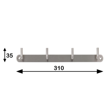Kapstok 4 haken Moja RVS 310 mm