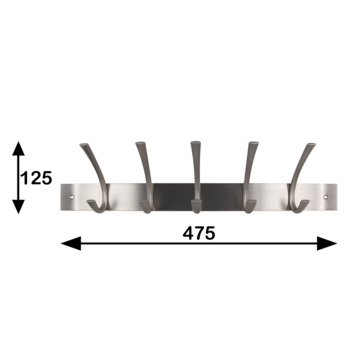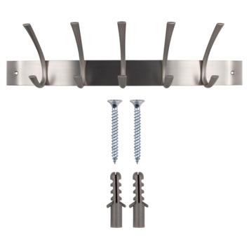 Deze kapstok is afgewerkt in mat nikkel en heeft 5 haken.