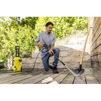 De Kärcher K2 Premium wordt geleverd met een compleet assortiment accessoires voor diverse toepassingen: een hogedrukpistool voor gerichte schoonmaak, een roterende sproeier voor de verwijdering van hardnekkig vuil, een terrasreiniger voor een grondige aanpak van grotere oppervlakken, een spuitlans en een reinigingsmiddel voor extra uitdagende vlekken.
