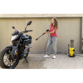 Je kunt altijd rekenen op de K3 Home hogedrukreiniger: hij is geschikt voor lichte vervuiling van kleine tuinen en terrassen, tuinmeubelen, auto’s, fietsen, enz. Met een hogedrukslang van 6 meter is het apparaat ideaal voor huishoudelijk gebruik en geeft het een stralende glans aan kleine tuinen en terrassen, evenals aan tuinmeubelen en auto’s.