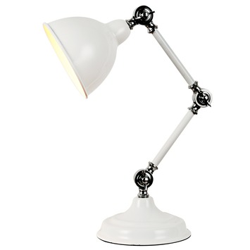 De KARWEI bureaulamp Specter wit past op ieder bureau. De lamp heeft een klassieke uitstraling en pas uitstekend op de werkkamer. De lamp is wit van kleur en is voorzien van drie scharnieren. Met de scharnieren kun je de lamp in hoogte verstellen en het licht richten. De bureaulamp heeft een E14 fitting en is geschikt voor een maximaal vermogen van 60 watt.