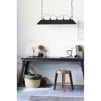 Op zoek naar een mooie, grote lamp voor boven de eettafel? Met hanglamp Vince haal je direct een eyecatcher in huis. De grote, zwarte kap in combinatie met de 2 ophangkettingen geven de lamp een stoere, industriële maar ook moderne uitstraling. De snoeren naar de 5 fittingen bovenop de lamp zorgen voor een speels effect en maken deze lamp uniek in zijn soort. Hang deze lamp bijvoorbeeld boven de eettafel en geniet extra van jouw maaltijd..