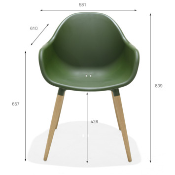 De stoel wordt als bouwpakket geleverd, wat zorgt voor een snelle en gemakkelijke montage. Kussens worden niet meegeleverd, maar je kunt ze eenvoudig zelf toevoegen voor extra comfort en stijl. De legergroene kleur zorgt voor een frisse uitstraling die perfect aansluit bij het natuurlijke karakter van je tuin. Dankzij het sterke kunststof materiaal kun je de Odense jarenlang buiten gebruiken, zonder je zorgen te maken over slijtage.