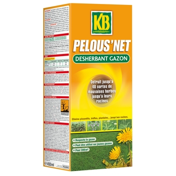KB pelous'net is een gazonherbicide die 40 soorten onkruid tot de wortel vernietigt zonder je gazon te beschadigen. Bye bye paardenbloem, boterbloem, madeliefjes, klavers, distels, netels, … Hello KB pelous'net! Tip: wees voorzichtig met het gebruik van biocides. Lees het etiket en de productgegevens voor elk gebruik.