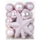 Kerstballen mix kunststof poederroze inclusief piek 33 stuks