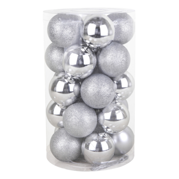 Kerstballen mix kunststof zilver 25 stuks