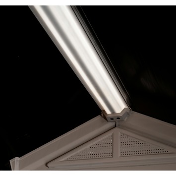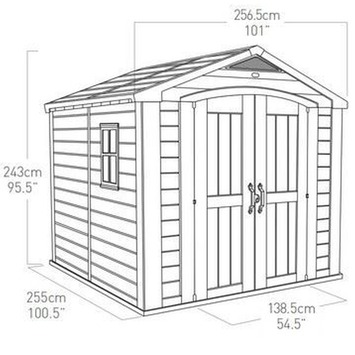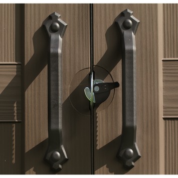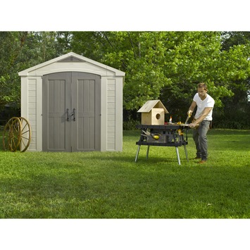 Het Factor 88 tuinhuis van Keter is een tuinhuis uit duurzaam kunststof in de kleuren beige en bruin, verstevigd met aluminium profielen. Het tuinhuis is 255 op 257 centimeter groot en 243 centimeter hoog, inclusief vloerpanelen, dubbele deur en dak met transparante delen voor natuurlijke lichtinval. De dubbele deur is uitzonderlijk handig om grote tuinspullen - zoals tuinmeubelen en overig tuingereedschap - binnen en buiten te dragen / rollen. Goed om te weten: de tuinhuizen van Keter zijn makkelijk in elkaar te zetten en nog makkelijker te onderhouden. Het tuinhuis is tevens afsluitbaar met hangslot (niet inbegrepen).