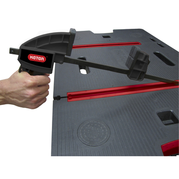 De Keter inklapbare werktafel is een erg handige werktafel waarmee je iedere klus tot een succes maakt. De werktafel kan tot maximaal 400 kg dragen en heeft aluminium poten. In de tafel zijn 2 handige lijmklemmen verwerkt. De afmeting uitgeklapt is (hxbxd): 75x85x55 cm, ingeklapt 11x85x55 cm. Met het geïntegreerde handvat draag je hem gemakkelijk. De tafel is één beweging op te zetten. Hij wordt geleverd in de kleur zwart/rood.