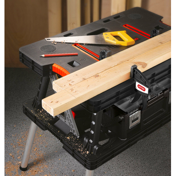Ik zocht een opvouwbare werktafel die opgevouwen weinig plaats in neemt en deze voldoet daaraan. Makkelijk uit - en in te klappen; de lijmklemmen berg je er in op. Handig bij het zagen.