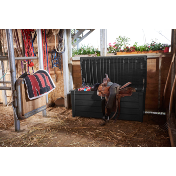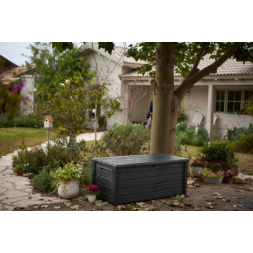 Zoek je een praktische opbergoplossing voor in de tuin? Deze opbergbox combineert het beste van twee werelden: de warme uitstraling van hout én de onderhoudsvriendelijkheid van kunststof. Met een formaat van 69,7 x 145 x 60,3 cm biedt de box genoeg ruimte voor tuinkussens, speelgoed of gereedschap. Dankzij het slimme ontwerp blijven je spullen niet alleen droog, maar ook goed geventileerd. Ideaal voor buitengebruik dus. En het beste? Je hoeft niets te lakken of te behandelen.