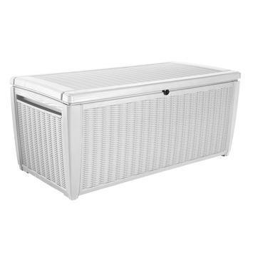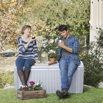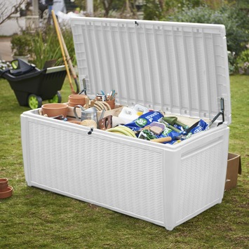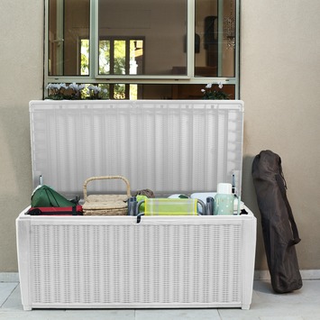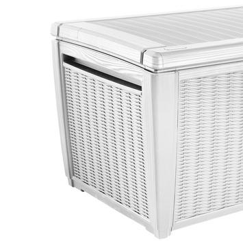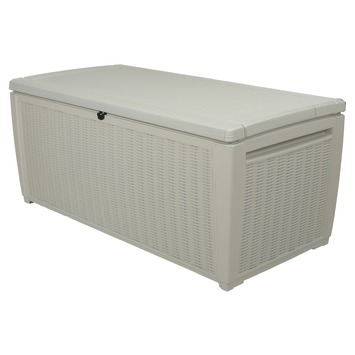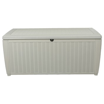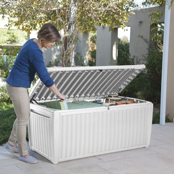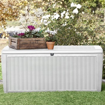Wat als … het mooie weer gedaan is? Dan berg jij je kussens op in de kussenbox die bij je andere tuinmeubilair past. Bij GAMMA heb je keuze te over aan kussenboxen, waaronder deze regenwaterdichte box van Keter met een wit rattanmotief. De kussenbox is voorzien van handvatten voor eenvoudige verplaatsing. Door het verstevigde deksel, is het mogelijk om de box te gebruiken als zitplaats voor twee personen.