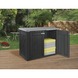 De Keter lounge shed is een opbergkast voor in de tuin. De Keter lounge shed is gemaakt van kunststof en is dus weerbestendig. De shed is 160 cm lang, 90 cm breed en 118 cm hoog. Je hebt dus een volume van 1,3 m³ ter beschikking. De Keter lounge shed is eenvoudig in elkaar te zetten. Je hebt ook de mogelijkheid om de shed af te sluiten met een hangslot (excl.). Kortom, de Keter lounge shed is een handige aanvulling bij jouw loungeset.