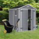 Deze Keter tuinhuis Manor 68 biedt een stevige, onderhoudsvrije oplossing om je spullen in je tuin op te bergen. Het tuinhuisje heeft een buitenmaat van: L 237 x B 189 x H 227 cm. Montage is zeer eenvoudig met gebruik van standaard gereedschap. Na levering kan het Keter Manor 68 kunststof tuinhuisje direct worden opgebouwd, mits een vlakke ondergrond is voorbereid. Kortom, met de koop van deze prachtige Keter Manor 68 tuinhuis heb je op betaalbare wijze een onverwoestbare en praktische extra opbergruimte in je tuin.