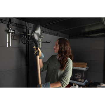 - Voor bezems en tuingereedschap aan de wand