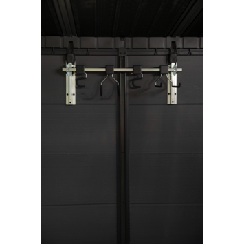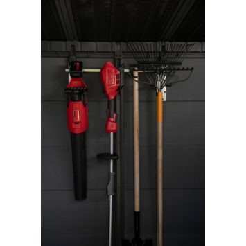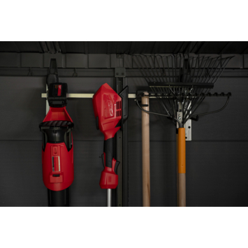 Met deze muurbeugel van Keter berg je je gereedschap veilig en overzichtelijk op. Door bezems en tuingereedschap aan de muur te hangen, hou je de vloer vrij en blijft je tuinhuis of schuur netjes georganiseerd. De houder is 74 cm lang en 31 cm hoog en biedt plaats aan verschillende items. De gereedschapshouder is gemaakt van gegalvaniseerd staal en afgewerkt met een krasbestendige laag. De haken samen kunnen tot 36 kg dragen. Zo creëer je een opgeruimde en praktische werkruimte zonder losse spullen op de grond.