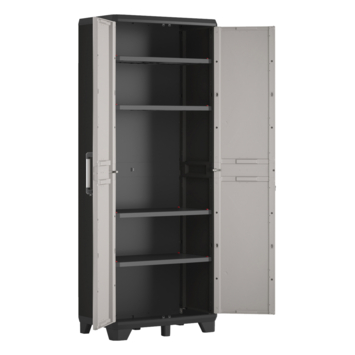 Eenvoudige montage: Voor extra stevigheid wordt aangeraden de kast aan een muur of wand te bevestigen. De Pro Hoge Opbergkast is perfect voor gebruik in je garage, op je balkon of terras.