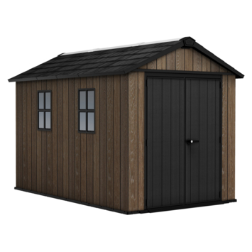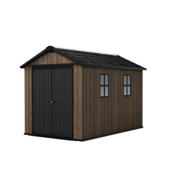 Het Keter Signature 7511 tuinhuis 350 x 230 x 246 cm heeft een herkenbare puntdakvorm en een houtstructuur in kunststof. De DECoCOAT panelen geven de uitstraling van hout, maar zonder schilderwerk of onderhoud. Zo combineer je een klassieke look met gebruiksgemak.