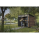 Je ontvangt het als compleet bouwpakket met een bijhorende vloer, die zorgt voor een stabiele ondergrond. Een slot kan geplaatst worden, maar is niet inbegrepen. Het pakket weegt 159 kg. Op dit tuinhuis geldt een beperkte garantie van 10 jaar.