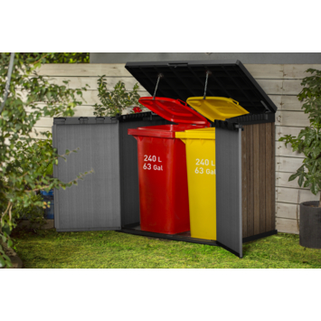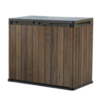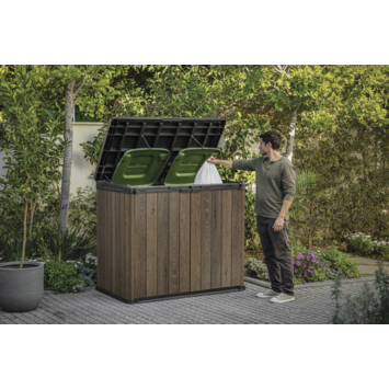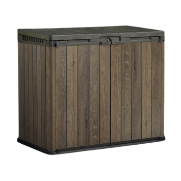 De Keter Store It Out Darwin Walnut opbergbox tuin 1100 liter is een ruime opbergbox voor tuinmateriaal of afvalcontainers. Met 1100 liter inhoud kan je bijvoorbeeld tuingereedschap, barbecue materiaal of 2 containers van 240 liter opbergen. Zo blijft je tuin of oprit netjes en overzichtelijk.