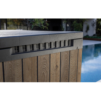 De opbergbox is gemaakt uit weerbestendig kunststof met houtstructuur. Het materiaal is onderhoudsvrij en geschikt om buiten te gebruiken. De inhoud blijft droog en goed verlucht. Je ontvangt de box als bouwpakket dat je zelf monteert.