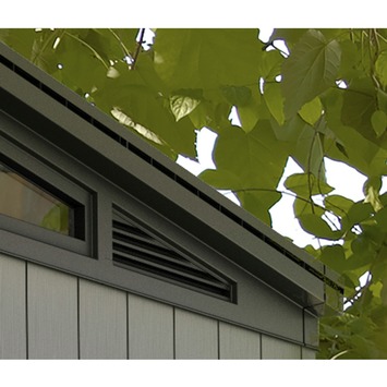 Ruimte genoeg in het Keter Artisan 77 tuinhuis om je tuinspullen goed te organiseren. Het huisje heeft een modern design en is gemaakt van DUOTECH™, een materiaal met een houtlook en alle voordelen van kunststof. Het tuinhuis is eenvoudig te monteren met twee personen, gemiddeld ben je 2 tot 3 uur bezig, als je de ondergrond vlak hebt voorbereid. Dankzij de duidelijke montage-instructies gaat het in elkaar zetten soepel. DUOTECH™ is bestand tegen regen, wind en zon, en vraagt weinig onderhoud. Ook kun je het tuinhuis overschilderen voor een persoonlijke touch. De twee openslaande deuren en licht aflopende drempel zorgen dat je gemakkelijk grote spullen naar binnen en buiten brengt. Voor voldoende daglicht zijn er dakramen en een transparant dakdeel. Het tuinhuis meet buiten 218 x 214 x 226 cm.