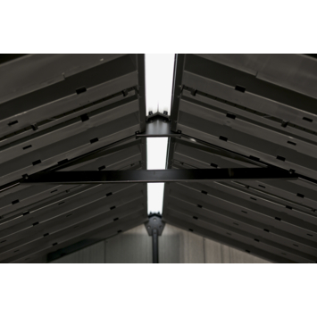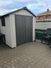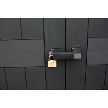 De twee breed openslaande deuren en het schuine vloerpaneel maken het gemakkelijk om grote tuinitems, zoals tuinmeubelen en een grasmaaier, naar binnen en buiten te dragen. Dit zorgt voor optimaal gebruiksgemak en toegang tot je tuinspullen.