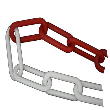 Deze veiligheidsketting met kunststof rode en witte schakels is zeer geschikt voor het afzetten van bijvoorbeeld parkeerplaatsen en toegangswegen. Doordat de ketting UV-bestendig is hij buiten te gebruiken en wordt nagenoeg niet aangetast door weersinvloeden. De ketting kunststof rood/wit 6mm 5 meter heeft een schakel van 41x19mm met een diameter van 6mm. De lengte van deze ketting is 5 meter. Doordat de ketting van kunststof is kun je hem naar wens inkorten. Door de rood/witte kleur is hij duidelijk waarneembaar. Kortom, de kunststof ketting is goed te gebruiken bij afzettingen.
