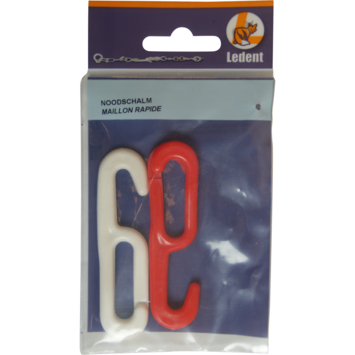 Ledent kettinghaak, rood en wit (2 stuks). De kettinghaak is gemaakt van kunststof en uitsluitend voor binnengebruik.