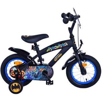 Voor ieder kind is leren fietsen een avontuur met de Batman 12 inch kinderfiets, verkrijgbaar bij Gamma! Veiligheid staat voorop met een handrem, terugtraprem en gesloten kettingkast. Met afneembare zijwieltjes, een bel en reflectoren in de trappers is deze stoere fiets perfect om snel te leren fietsen. Comfortabel en stijlvol, de zwarte Batman fiets met blauwe accenten heeft extra lange spatborden om vuil tegen te houden, een zacht zadel en een uniek frame dat tegen een stootje kan. Verstelbare hoogtes voor zadel en stuur zorgen ervoor dat de fiets met het kind meegroeit. Kortom, een kwalitatieve fiets waar je kind jarenlang plezier van zal hebben!