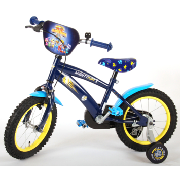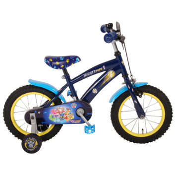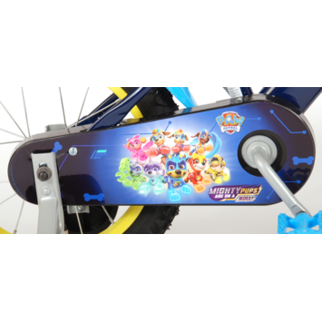 Paw Patrol Mighty Pups kinderfiets 14 inch. Paw Patrol Mighty Pups is de super leuke en spannende special van de Paw Patrol serie, speciaal voor de jongsten. Deze Paw Patrol 14 inch kinderfiets is werkelijk een topper, helemaal in de Paw Patrol kleuren met schitterende stickers en met een super mooi, stoer en modern frame. De fiets heeft afneembare zijwieltjes om snel te kunnen leren fietsen en de kettingkast is ter bescherming van de kleine vingertjes gesloten. Met deze fiets kan ieder kindje zo snel fietsen, waardoor het voelt alsof ze dezelfde krachten hebben als de Mighty Pups! Vroemmm, daar ga je! Paw Patrol Official Licensed Product. Deze fiets is voor 95% afgemonteerd, dus bijna fietsklaar. Wel zo gemakkelijk!