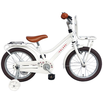 Volare Liberty 16 inch kinderfiets. Deze prachtige Volare Liberty kinderfiets is geliefd onder alle jonge meiden. De achterdrager van de fiets is geïntegreerd in het frame, waardoor de fiets een strak en modern uiterlijk heeft. Het zadel en stuur zijn beide in hoogte verstelbaar, dit zorgt ervoor dat de fiets met uw kindje mee kan groeien. Met de handrem en terugtraprem kan vaart worden geminderd. De fiets beschikt over zowel een voordrager als achterdrager, zodat ieder meisje haar spulletjes gemakkelijk mee kan nemen. Het zachte zadel en de handvaten zorgen voor extra comfort en ter bescherming van de kleine vingertjes is de kettingkast gesloten. Bovendien heeft de fiets een fietsbel om aan iedereen te kunnen laten weten dat je de hoek om komt. Met de afneembare zijwieltjes kan ieder kind snel leren fietsen. Deze fiets is voor 95% afgemonteerd, waardoor hij al bijna fietsklaar is. Zoefff, daar gaat je kindje, naar zijn vriendjes en vriendinnetjes!