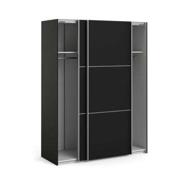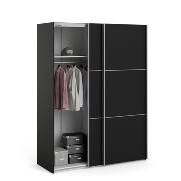 De garderobekast Janneke is dé ultieme kast voor in jouw kamer! Deze zwarte kast met de afmeting (h x b x d) 202 x 152 x 64 cm is van hoogwaardige kwaliteit en biedt voldoende ruimte om jouw kleding, schoen en bijbehorende items in op te kunnen bergen. Deze kast heeft twee schuifdeuren. Voor een zachte sluiting van de kast kan je ook kiezen om een softclose toe te voegen, zodat de kast altijd zachtjes dichtgaat.