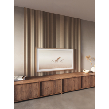 Met het kleurstaal van de lattenwand Decowall Acoustic Curve zand kan je thuis beoordelen of het wandpaneel past bij jouw huis en inrichting. Het kleurstaal hoort bij het paneel lattenwand 260x30cm (artikel 336979)