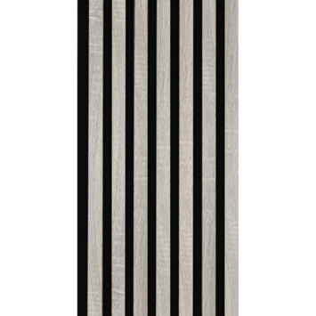 Met het kleurstaal van de lattenwand Decowall Acoustic grijs eiken kan je thuis beoordelen of het wandpaneel past bij jouw huis en inrichting. Het kleurstaal hoort bij het paneel lattenwand 260x30cm (artikel 263619)