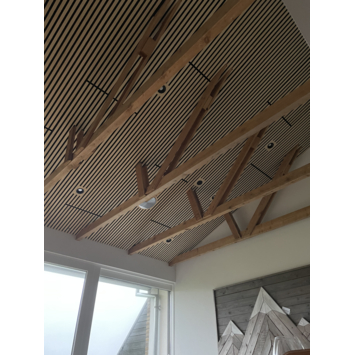 Met het kleurstaal van de lattenwand kan je thuis beoordelen of het wandpaneel past bij jouw huis en inrichting. Het kleurstaal hoort bij het paneel lattenwand 244x60,5 cm essen, dikte 22mm (artikel 220897) en 260x52,6cm (artikel 235458)