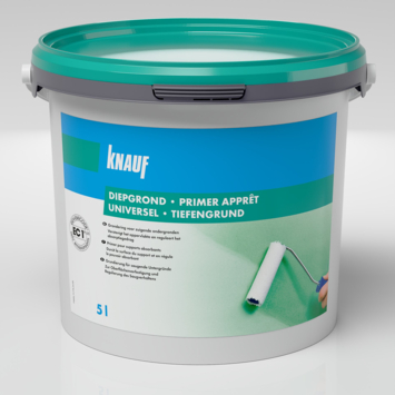 De Diepgrond Primer zonder oplosmiddel (5 liter) van Knauf is een oplossing van water en verzepingsbestendige harsen met een hoog penetratievermogen. Deze primer verstevigt het oppervlak, bevordert de hechting en regelt het absorptiegedrag. Het is geschikt voor universeel gebruik, zoals bij dekvloeren, vloeren, binnenmuren en buitenmuren. Door het gebruik van deze primer zorg je voor een betere ondergrond voor je afwerking, waardoor het eindresultaat mooier wordt.