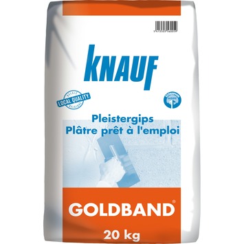De pleistergips Goldband E van Knauf is de ideale gips om binnenwanden en plafonds te pleisteren. Je kan de pleistergips aanbrengen op verschillende oppervlakken: baksteen, beton, cellenbeton, betonstenen, snelbouwblokken, enzovoort. Het Knauf Goldband pleistergips (20 kg) heeft een verwerkingstijd van 90 minuten en een droogtijd van 6 uur. Gebruik enkel binnenshuis, bijvoorbeeld om je muren en plafonds te bepleisteren. Verwerk binnen de 8 maanden na aankoop voor het beste eindresultaat.