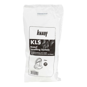Deze pvc clips zijn onderdeel van het Knauf Levelling Systeem. Dit pakket met hulpstukken helpt je bij het plaatsen en nivelleren van tegels. Een verpakking bevat 100 kunststof clips met een poortvormige opening. In combinatie met de KLS spieën gebruik je de clips om aangrenzende tegels snel en nauwkeurig op gelijke hoogte te plaatsen. Verkrijgbaar in twee maten, 3-12 millimeter en 12-20 millimeter.