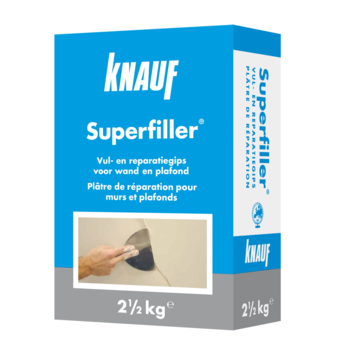 De Knauf Superfiller 2,5 kg is een vulgips geschikt voor het repareren van diepe beschadigingen in wanden en plafonds die klein tot middelgroot van omvang zijn. Toe te passen op steenachtige ondergronden binnenshuis.