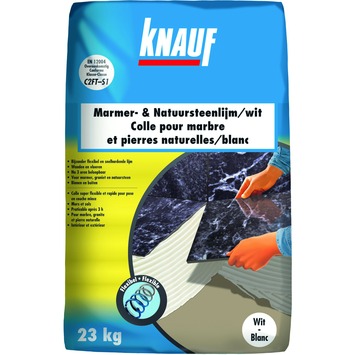 De marmer- en natuursteenlijm (23 kilogram) van Knauf is makkelijk in gebruik, kleeft goed en geschikt voor het betegelen van al je vloeren, wanden en andere klussen. Verkrijgbaar in verschillende kleuren, waaronder wit.